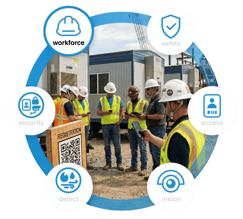 Construction worker registration, time tracking, access control, video surveillance and more.